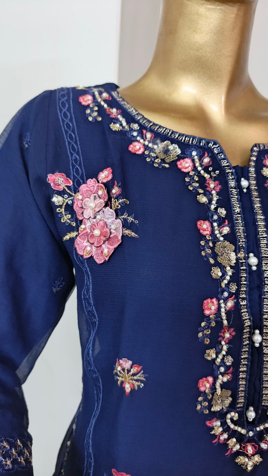 Cyra Handwork Shirt front Chiffon 3 piece ready to wear traditional suit