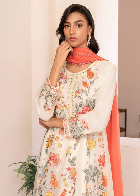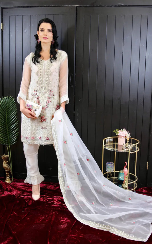 Bina White Chiffon heavy embriodered Maxi 3 piece ready to wear traditional womenwear outfit