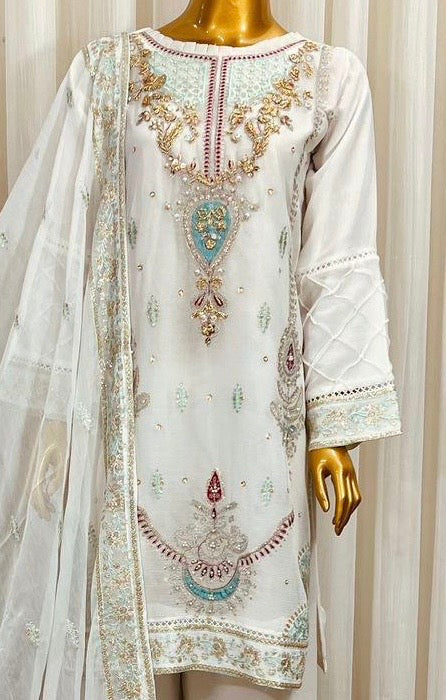 AREEBA Heavy Handwork Shirt front Neck Chiffon 3 piece ready to wear traditional suit