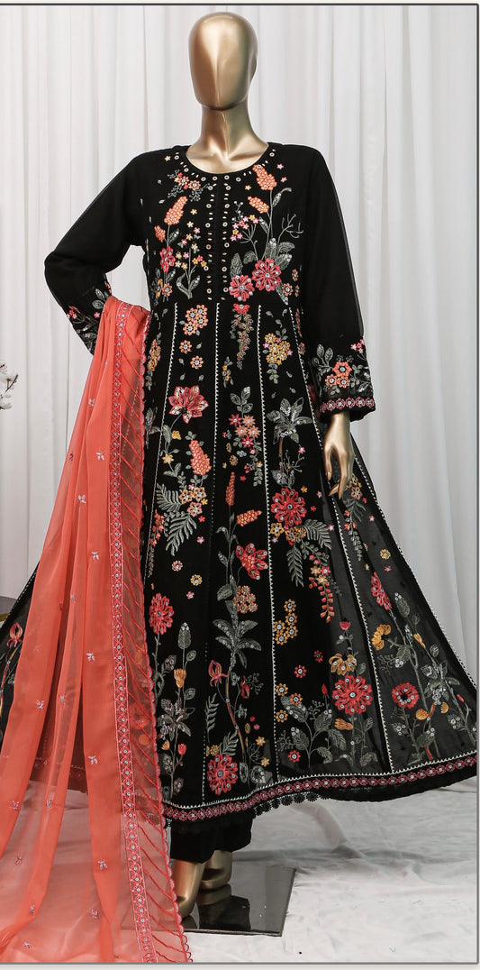 Guncha Luxury chiffon Embroidered womenswear 3 piece ready to wear suit (Black)