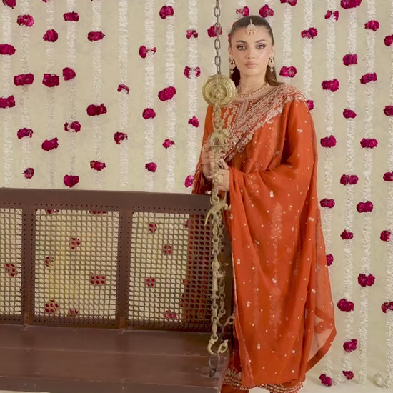 RUMI luxury chiffon Embroidered womenswear 3 piece ready to wear suit (Watch video)
